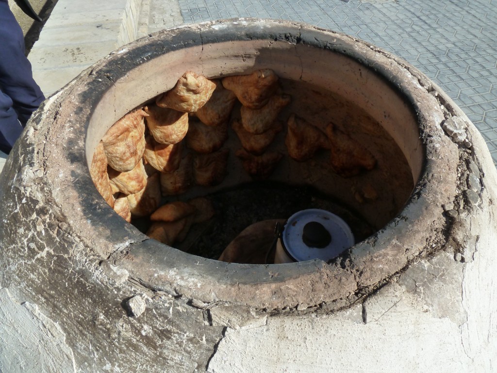 Im frühen Herbst ist Erntezeit. Entlang der Ausfallstraßen und auf den Märkten türmen sich Melonen, Trauben sowie Granatäpfel, deren frisch gepresster, leuchtend roter Saft allerorts angeboten wird. Ob in der usbekischen Hauptstadt Taschkent, im kirgisischen Osch oder im tadschikischen Khudjand – ein Gang über die Märkte ist stets ein Erlebnis, das alle Sinne anspricht. Nüsse und getrocknete Früchte aller Art, farbenfrohe Gewürze und der Duft von frisch gebackenem Brot, das aus den Tandir-Lehmöfen gezogen wird, lassen das kulinarische Herz höherschlagen. Brot bzw. Non oder Nan ist wichtiger Bestandteil jeder Mahlzeit und kommt immer zuerst auf den Tisch. Es wird gebrochen (niemals geschnitten!) und sollte nicht übriggelassen werden.
